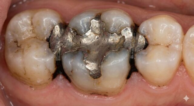 銀歯(金銀パラジウム合金など)は、温かい飲み物や冷たい食べ物を摂取する際の熱膨張・収縮率が、歯の天然の構造と大きく異なります。これにより、長期間の使用で金属と歯の間に微細な隙間(マイクロリーク)が発生しやすくなります。 - レジン(プラスチック)の吸水性・摩耗性