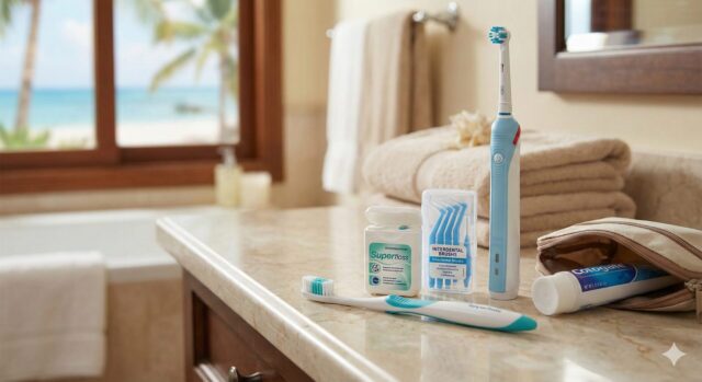 旅行から帰った後、インプラントの土台を失う事態にならないよう、日々の丁寧な清掃が不可欠です。「インプラントを「一生モノ」に!天然歯の歯周病より厄介な「インプラント周囲炎」から守る予防の極意」もご参照ください。 - 持ち運びたい専用ケアグッズ: