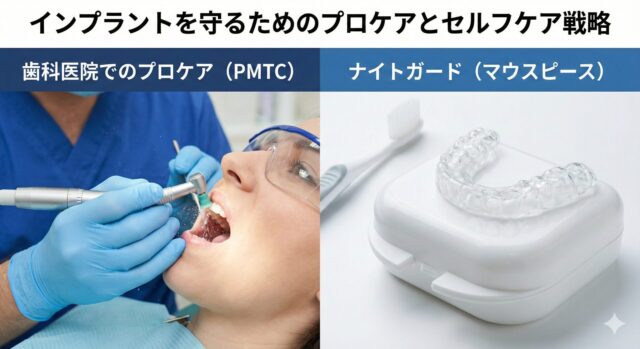 構造的な弱点を補うためには、歯科医院での「プロケア」と、就寝中の力をコントロールする「ナイトガード」が必須です。