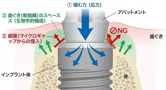 なぜ、接合部に段差を設けるだけで骨が守られ、歯ぐきが下がりづらくなるのでしょうか?プラットフォームスイッチングが長期安定性を実現する、3つの科学的な理由を解説します。