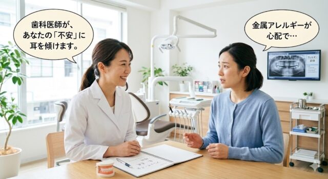 最も危険なのは、自己判断で諦めてしまったり、曖昧な情報だけを信じて検査なしに治療に踏み切ったりすることです。専門的な事前検査によってご自身の体質を正確な数値とデータで把握し、その結果に基づいて、ジルコニアのような最適な非金属素材を選択すれば、安全で長期的に安定したインプラント治療は十分に実現可能です。