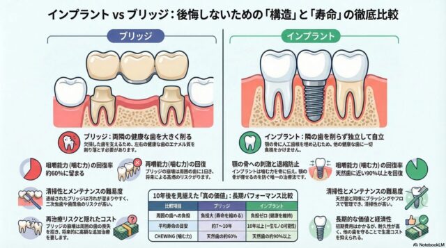 初期費用だけでは見えない!ブリッジとインプラント「隠れたコスト」徹底比較