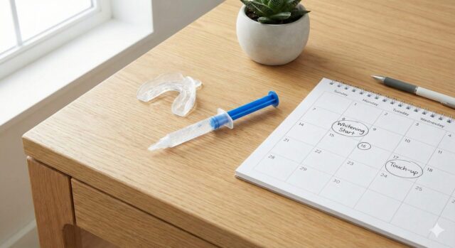 歯の表面にバイオフィルム(細菌の膜)やステインが付着したままでは、ホワイトニング薬剤が歯に浸透しません。必ず歯科医院で**PMTC(専門的機械的歯面清掃)**を受け、歯をツルツルの状態にしてからタッチアップを開始しましょう。