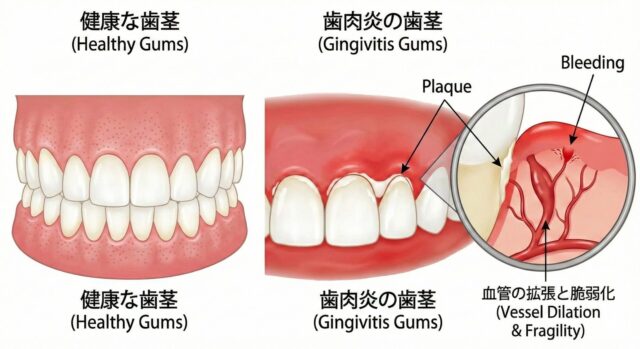 - 血管の脆弱化:腫れた歯茎の毛細血管は非常に破れやすくなります。
