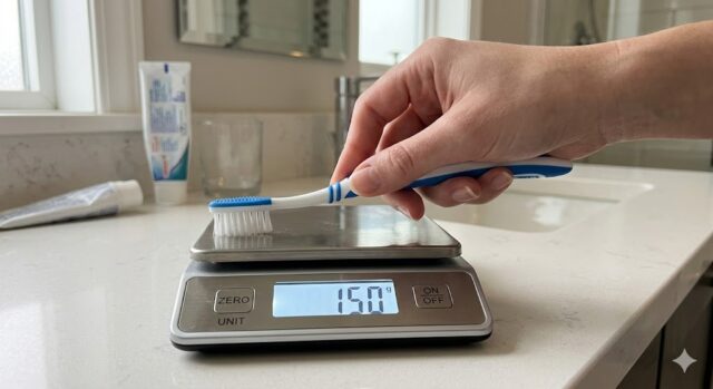 - ペングリップ(鉛筆持ち)で力を100gに抑える: 歯磨きで推奨されるブラッシング圧は100g〜200g未満(筆圧程度の非常に軽い力)です。歯ブラシの持ち方を「ペングリップ(鉛筆持ち)」に変えることで、自然と強い力が入りにくくなり、力を分散させながら小刻みに動かすことが可能になります。 (参考:【歯科医推奨の磨き方】歯周病を防ぐ「鉛筆持ち(ペングリップ)」の科学。なぜ100gの圧が重要なのか? – 泉岳寺駅前歯科クリニック)