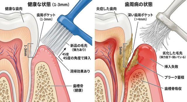 1. 歯周ポケット清掃における「毛先」の絶対的役割