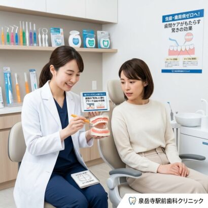 デンタルフロスや歯間ブラシを適切に併用することで、プラーク除去率は飛躍的に向上します。日常的な歯間ケアは、虫歯の発生リスクを大幅に下げ、歯周病の進行を抑制する強力な武器となります。