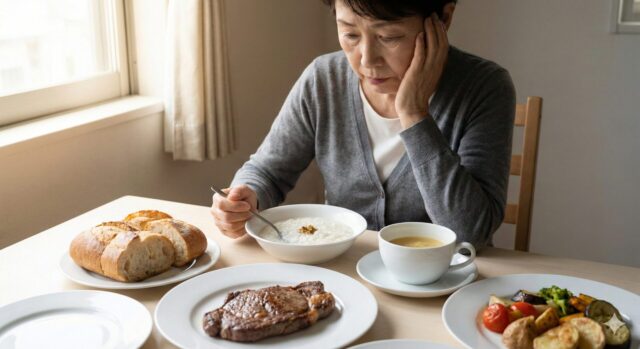 - 低栄養のリスク: 肉類や繊維質の野菜を避けることでタンパク質不足になり、全身のフレイル(虚弱)を招きます。