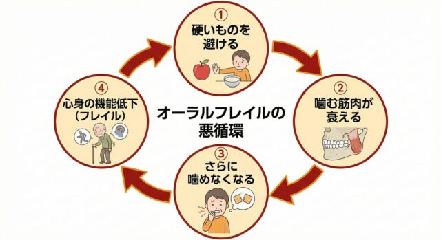 この「硬いものを避ける」という小さな諦めが、**オーラルフレイル(口の機能の虚弱)**の入り口です。