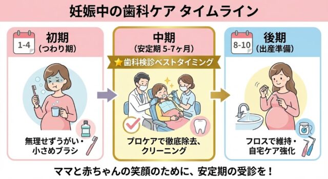 妊娠中の口腔ケアは、時期に合わせた対策が重要です。