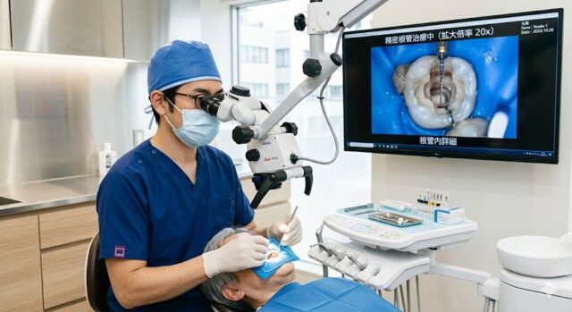 一度失った骨を元に戻すことは困難ですが、進行を食い止めることは可能です。当院では**マイクロスコープ(歯科用顕微鏡)**を用いた精密治療を行い、感染源を徹底除去することで、残っている歯を最大限に長持ちさせます。