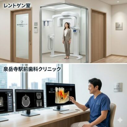 神経が死んでしまったり、過去の根管治療が不十分だった場合に起こる「根尖病巣(こんせんびょうそう)」も、CTなら位置や広がりを正確に把握できます。これは、港区三田・泉岳寺駅前歯科クリニックの根管治療において、再発を防ぎ歯を救うための極めて重要なプロセスです。